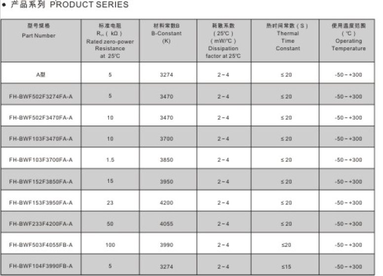 高精度玻封NTC熱敏電阻 BWF153J3950FA-A
