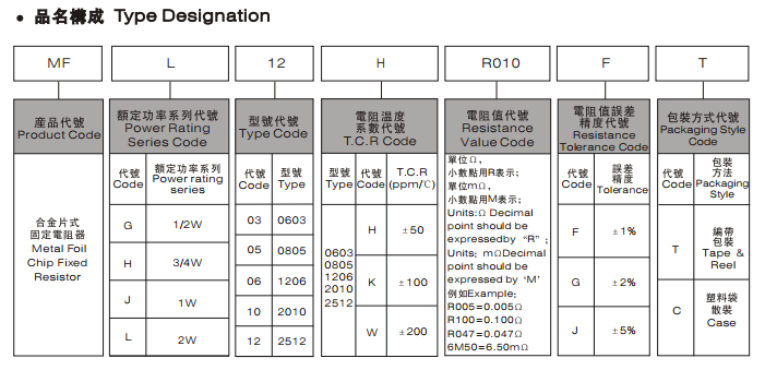 合金片式固定電阻器 MFL12HR010FT