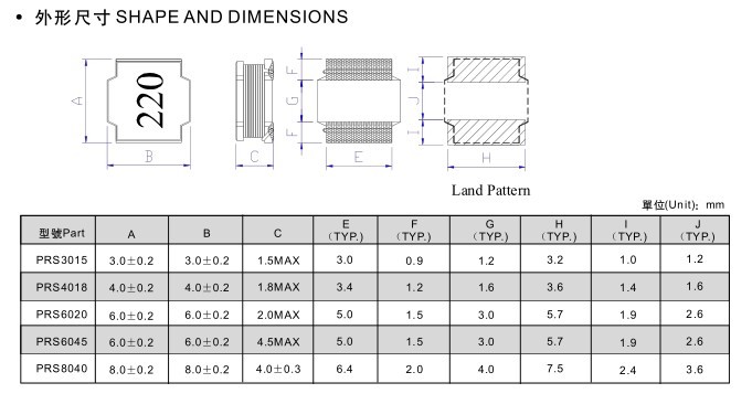超薄PRS功率電感,頻閉式結(jié)構(gòu),適合表面安裝