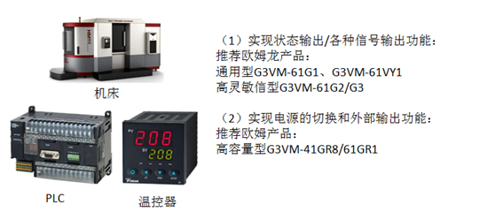 (3)自動化設(shè)備產(chǎn)品應(yīng)用:比較機(jī)床、PLC、溫控器、計時器等,繼電器在產(chǎn)品上起的作用主要為產(chǎn)品狀態(tài)指示、控制照明電源切換等。