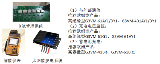 (1)能源設(shè)備:包括電池管理系統(tǒng)、電力計、智能儀表、二次能源、太陽能發(fā)電系統(tǒng)等等,MOS繼電器在產(chǎn)品上所起的作用是充電電壓的監(jiān)控、蓄電池充電,外部通信信號輸出。