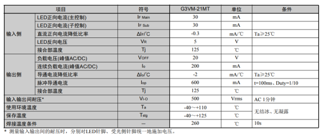 日本進(jìn)口MOS FET光耦繼電器模塊G3VM-21MT,采用了T型電路結(jié)構(gòu),當(dāng)主電路斷開(kāi),子電路閉合時(shí),漏電流可以低至1pA以下,特別適合應(yīng)用于半導(dǎo)體測(cè)試設(shè)備中。