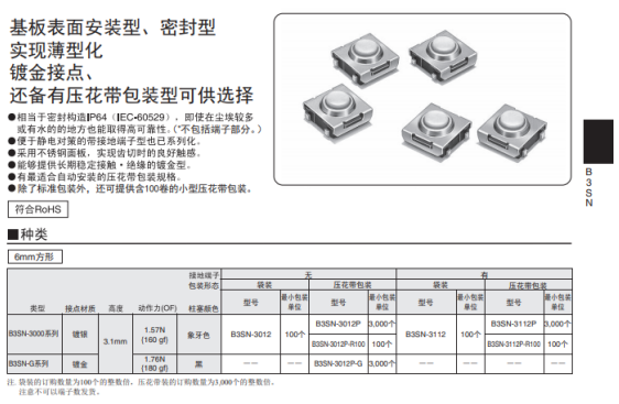 歐姆龍的輕觸開關(guān)普遍應(yīng)用在電動牙刷,輕觸開關(guān)適合高密度表面貼裝,有的焊接后可清洗,密封型可防塵,最適合惡劣環(huán)境選用,電路設(shè)計簡單。產(chǎn)品壽命10萬~1000萬次不等。