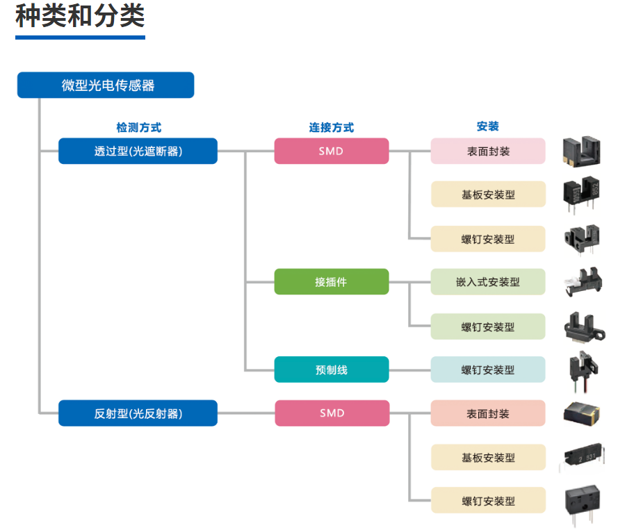 透過(guò)型微型光電傳感器中,發(fā)光元件的發(fā)光面和接受光線并發(fā)出信號(hào)的受光元件受光面相對(duì)而立,物體通過(guò)兩者的間隔,會(huì)遮住光線,引起受光元件受光量的變化。