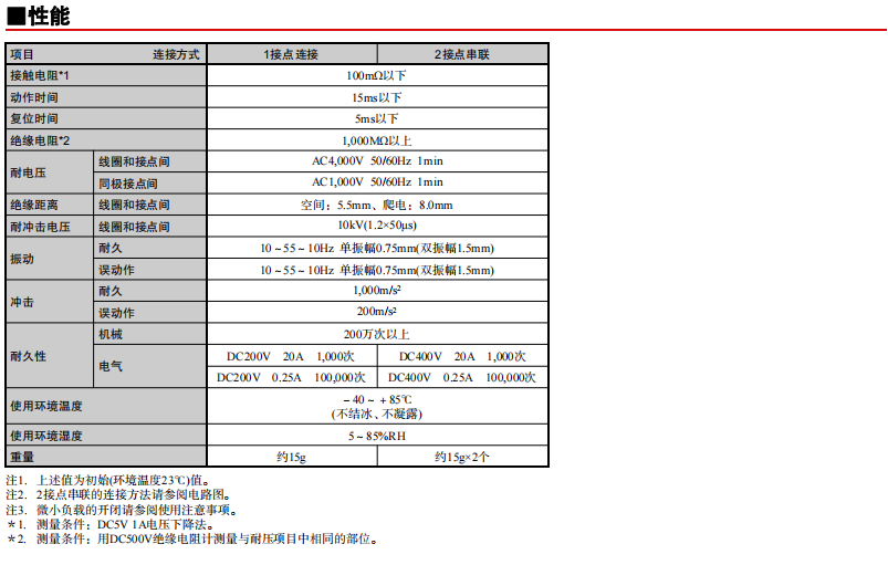 通過產(chǎn)品的2接點(diǎn)串聯(lián)實(shí)現(xiàn)了DC400V 20A雙向開閉 寬度15.2mm的纖細(xì)尺寸實(shí)現(xiàn)了無論極性的DC200V 20A開閉 功耗530mW的高靈敏度 (保持電壓50%的使用環(huán)境下實(shí)現(xiàn)更好的節(jié)能效果) 線圈和接點(diǎn)間的絕緣距離5.5mm以上,耐沖擊電壓10kV的高絕緣性 串聯(lián)連接取得了UL/TüV/CQC認(rèn)證