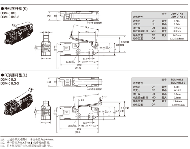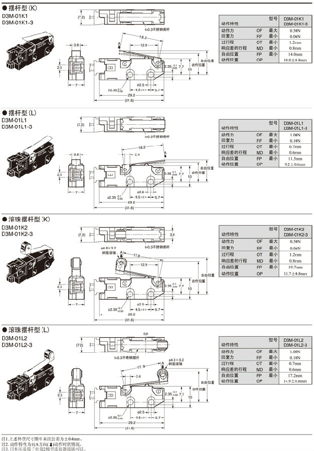 *2. 在針狀按鈕型中為了自由位置和總行程位置的數(shù)據(jù),在擺桿型中為總行程位置的數(shù)據(jù)。