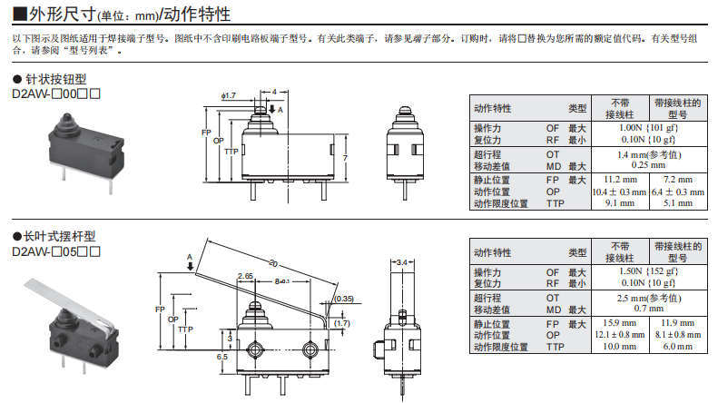 D2AW防水微動(dòng)歐姆龍開(kāi)關(guān)
