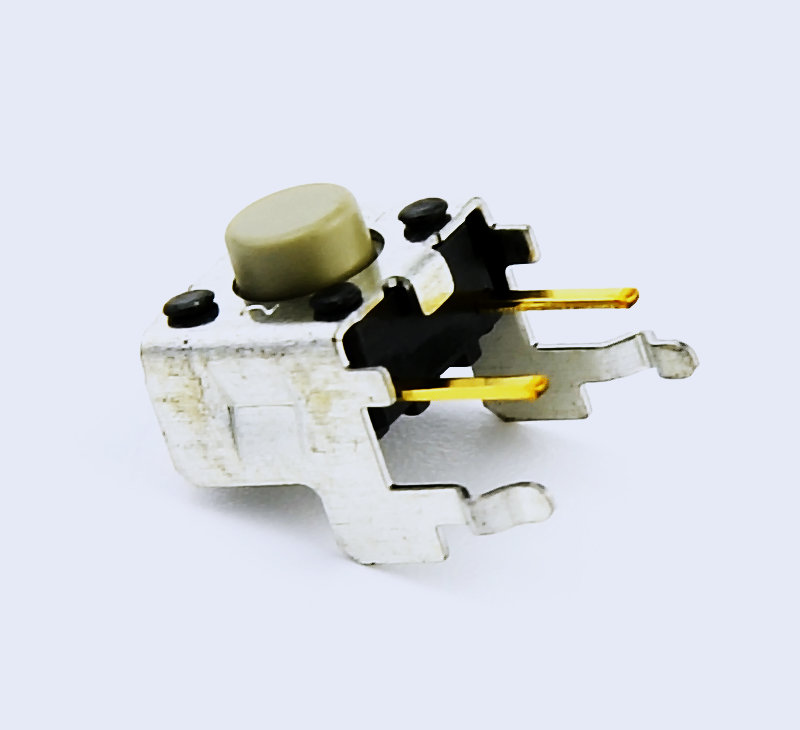 B3F 輕觸式開關(guān) 基板插入安裝型,6mm方形、12mm方形及橫向操作型、鍍金接點、徑向帶裝型等,品種齊全 ? 實現(xiàn)輕快的按觸感及高壽命 ? 備有可用于通用的徑向帶狀部件插入機的帶狀規(guī)格 ? 備有可以在長時間內(nèi)保持穩(wěn)定接觸和絕緣的鍍金型。 ? 凸型頂塊上可以安裝鍵頂(B32系列)。 B3F 基板插入安裝型,6mm方形、12mm方形及橫向操作型、鍍金接點、