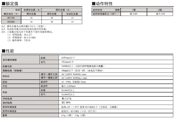 額定/性能