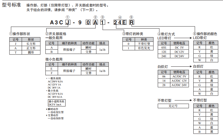 A3C系列按鈕歐姆龍開關(guān)(帶燈、不帶燈)(圓型φ12)