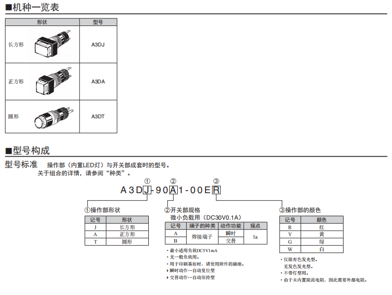 A3D 帶燈按鈕歐姆龍開關(圓型φ8)