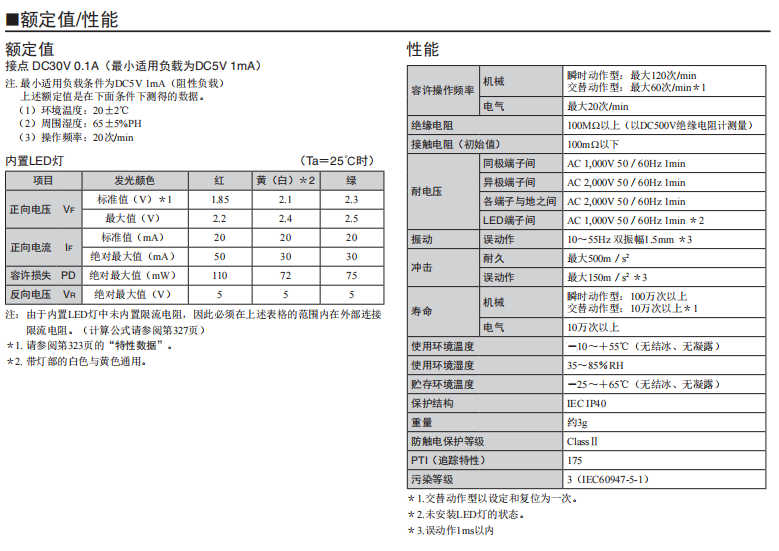 額定/性能