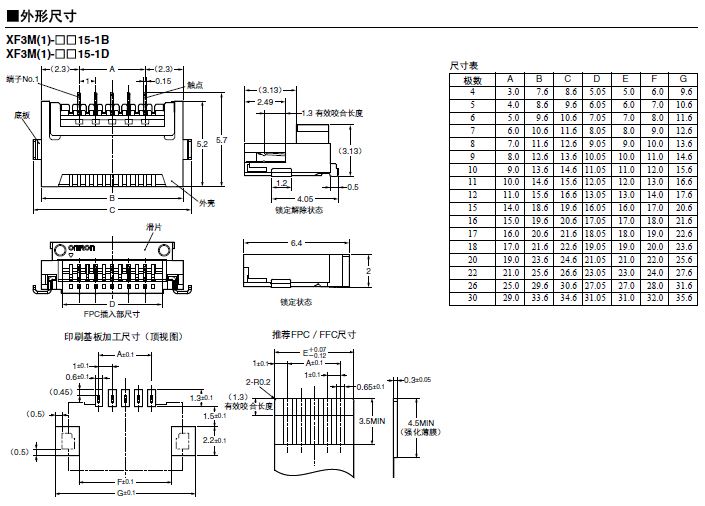 XF3M 旋轉(zhuǎn)后鎖結(jié)構(gòu)(端子間距0.5mm、1.0mm、雙面觸點(diǎn)類型)