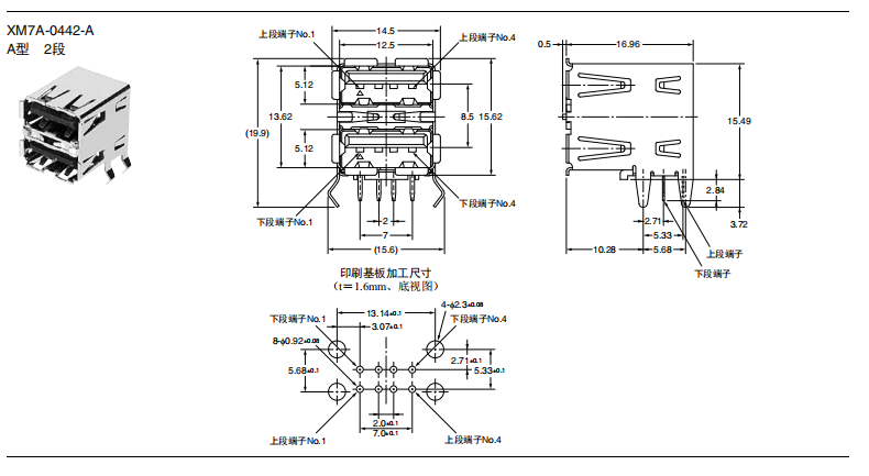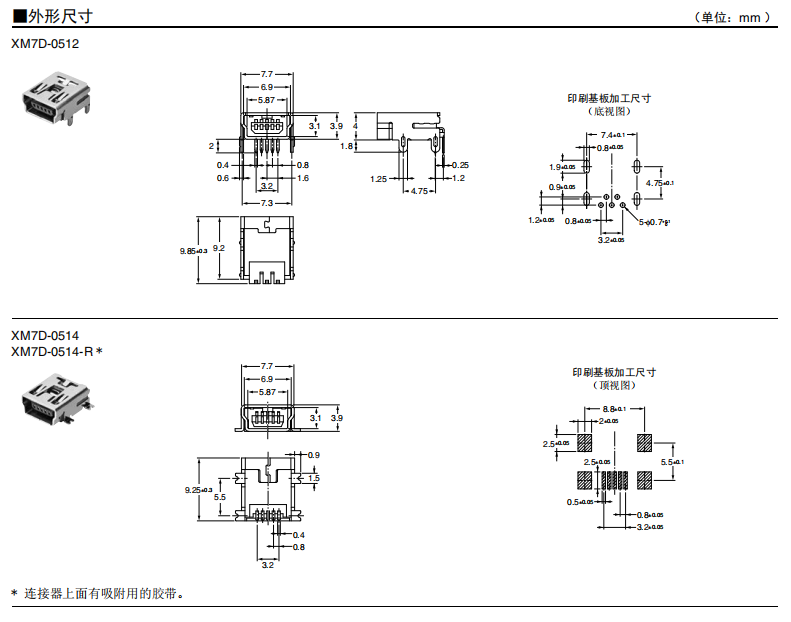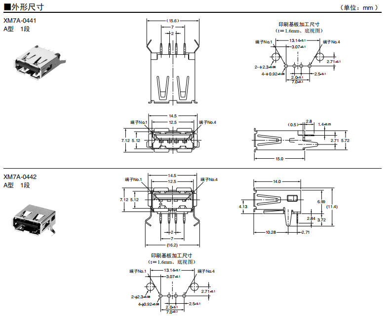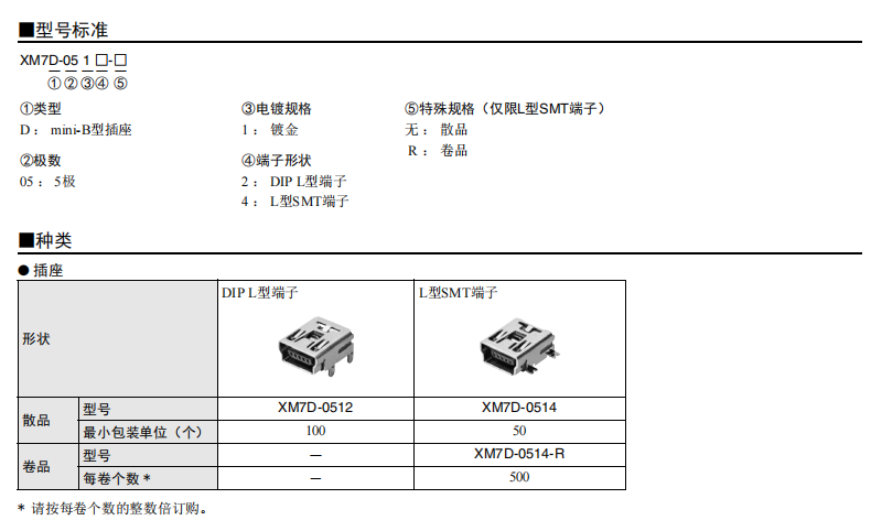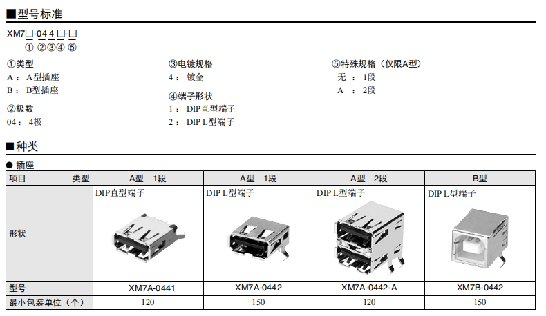符合USB標(biāo)準(zhǔn)的 小型接口連接器 符合USB2.0標(biāo)準(zhǔn)。 插拔次數(shù)可達(dá)1,500次。 A型插座封裝在計算機(jī)主體、USB集線器等上,B型插座封裝在調(diào)制解調(diào)器、掃描儀、鼠標(biāo)等計算機(jī)外圍設(shè)備上。 有無認(rèn)證規(guī)格,請參見“規(guī)格認(rèn)證”。