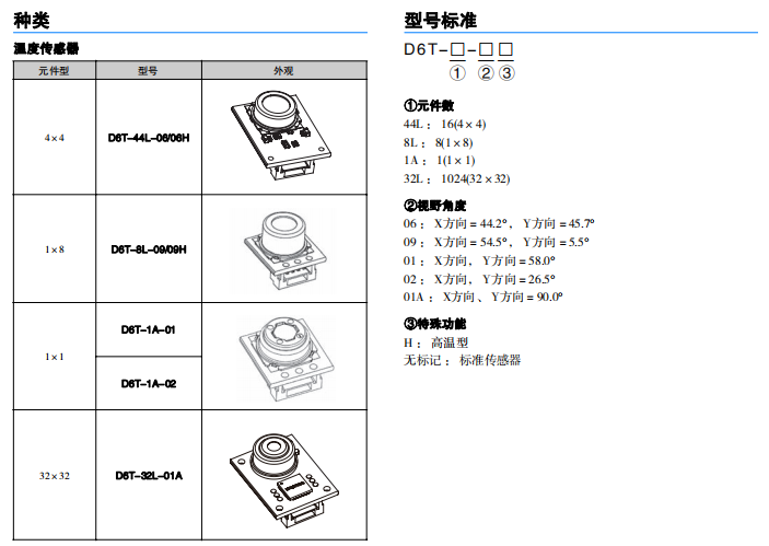 | 型號 | D6T-44L-06/06H | D6T-8L-09/09H | D6T-1A-01 | D6T-1A-02 | D6T-32L-01A |