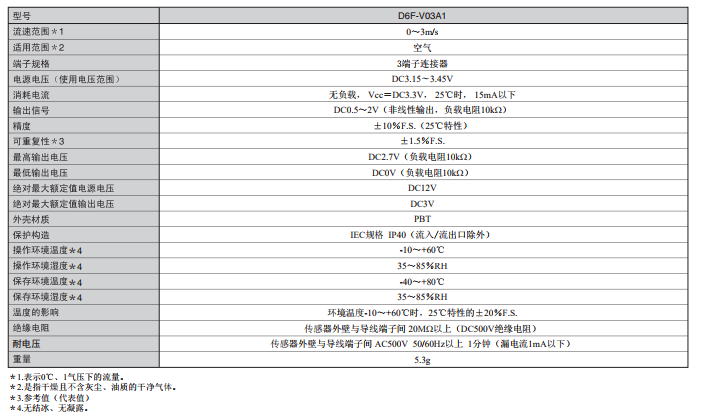 MEMS風量流速傳感器D6F-V03A1
