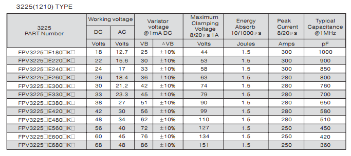 特征: 1、疊層片式陶瓷結(jié)構(gòu)。 2、無引線。 3、溫度范圍:-55℃~+125 ℃。 4、工作電壓范圍V w(dc)=3.3~ 615V。 5、具有雙向限制特性,適合ESD保護(hù)。 6、漏電流非常小。 7、寄生電感小、響應(yīng)速度快(響應(yīng)時間少于0.5ns)。 8、優(yōu)良的溫度系數(shù)。 9、良好的焊接性能(端電極為三層電鍍)。 應(yīng)用: 1、防止過電壓:當(dāng)施加的電壓升高到壓敏電壓時,壓敏電阻器的電流急劇上升,被保護(hù)設(shè)備的浪涌電壓迅速減小,從而使裝有壓敏電阻器的設(shè)備抗浪涌噪聲能力達(dá)到相應(yīng)要求。